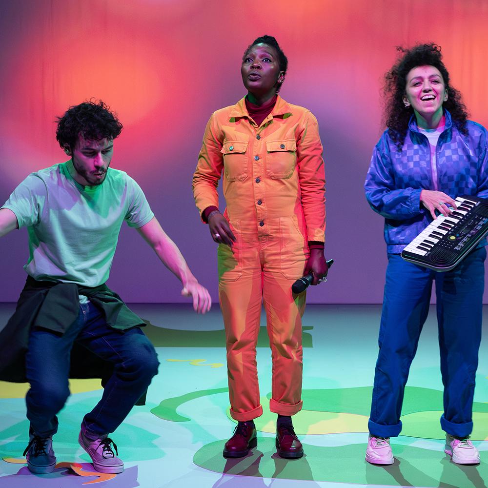 Écriture collective - Mise en scène Marie Devroux - Avec Aminata Abdoulaye Hama, Leïla Chaarani, Ferdinand Despy, Marie Devroux et Sasha Martelli - Collaboration à l’écriture, à la conception et à la recherche Ferdinand Despy - Collaboration à la mise en scène Hanna El Fakir - Assistanat à la mise en scène Louise d’Ostuni - Dramaturgie Adeline Rosenstein - Création lumière Sibyl Cabello - Création sonore Noée Voisard - Composition musicale Noée Voisard et Leïla Chaarani - Création graphique Martyna Zalalyte - Scénographie Louise Siffert - Costume Miléna Forest - Régie générale Jérémie Vanoost - Régie vidéo et son Hubert Monroy et Sébastien Destrait - Régie lumière Gauthier Minne - Habillage Nina Juncker | Coproduction Le Rideau, la COOP asbl et Shelter Prod. avec le soutien de Taxshelter.be, ING et le Tax Shelter du Gouvernement fédéral belge, Factory, La Fabrique de Théâtre, Théâtre & Publics, la Chaufferie acte-1, le Varia, les bureaux l’Escaut, le Corridor | Production déléguée Le Rideau | Crédit photo Alice Piemme